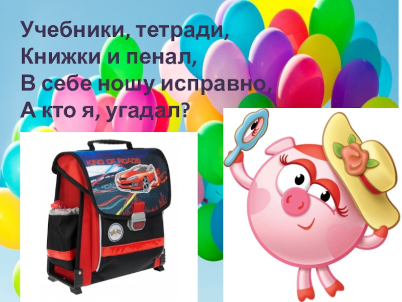 Учебники, тетради,Книжки и пенал,В себе ношу исправно,А кто я, угадал?
