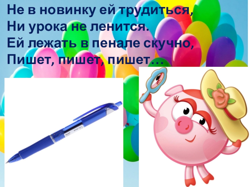 Не в новинку ей трудиться, Ни урока не ленится. Ей лежать в пенале скучно, Пишет,