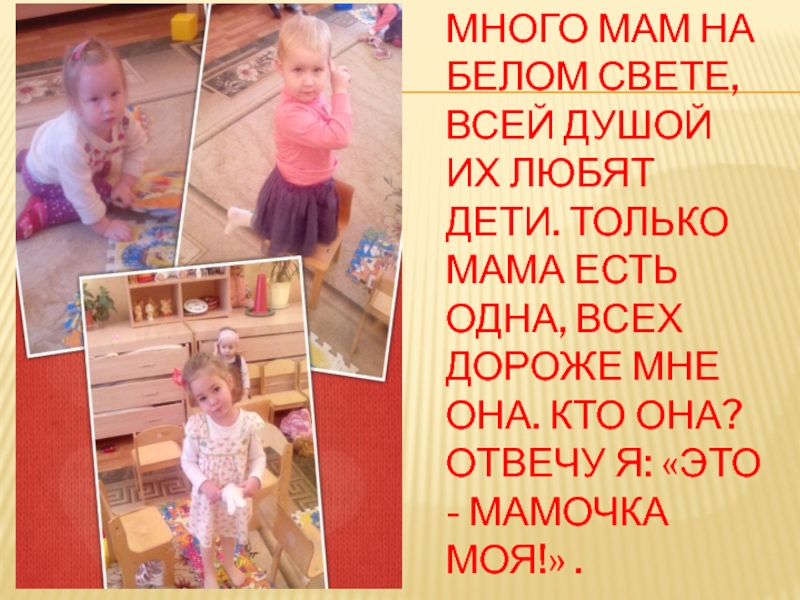 Слайд 3Много мам на белом свете, Всей душой их любят дети. Только
