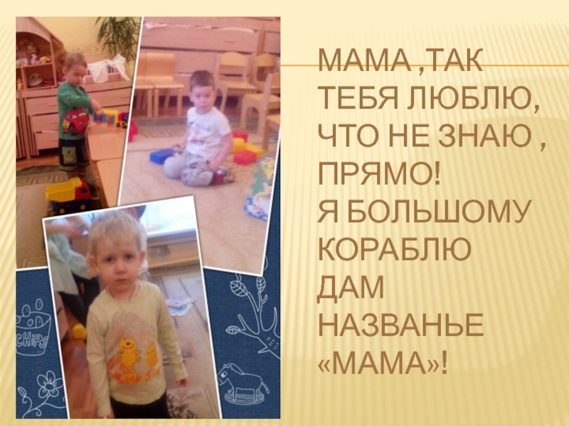 Мама ,так тебя люблю, Что не знаю , прямо! Я большому кораблю Дам названье «МАМА»!