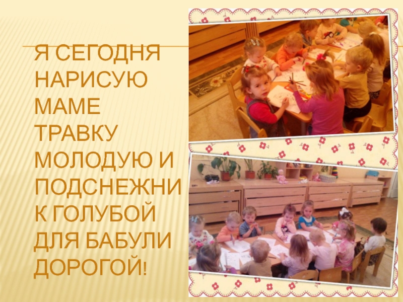 Я сегодня нарисую Маме травку молодую и подснежник голубой Для бабули дорогой!