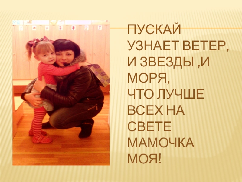 Слайд 7Пускай узнает ветер, И звезды ,и моря, Что лучше всех на свете Мамочка