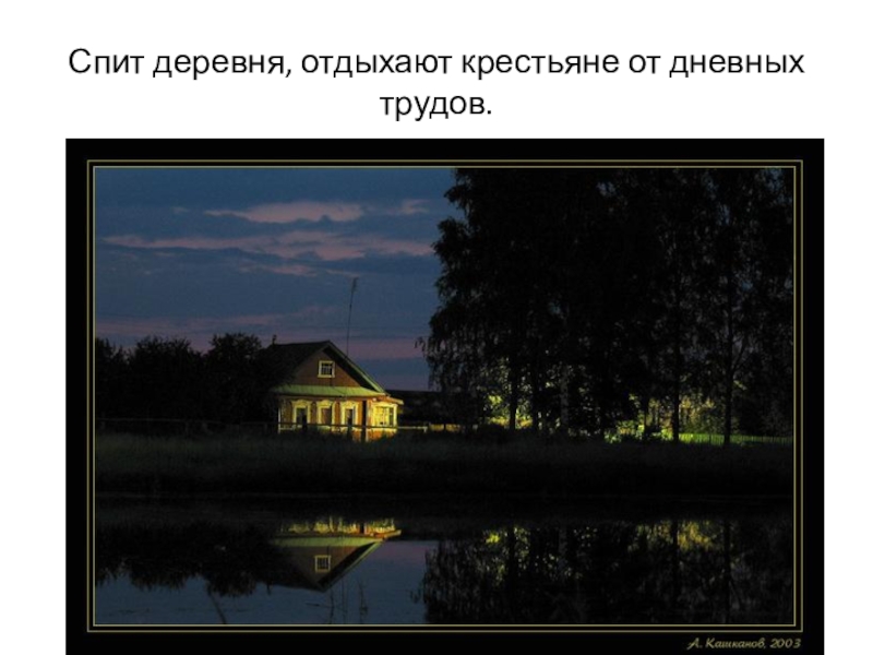 Слайд 16Спит деревня, отдыхают крестьяне от дневных трудов.