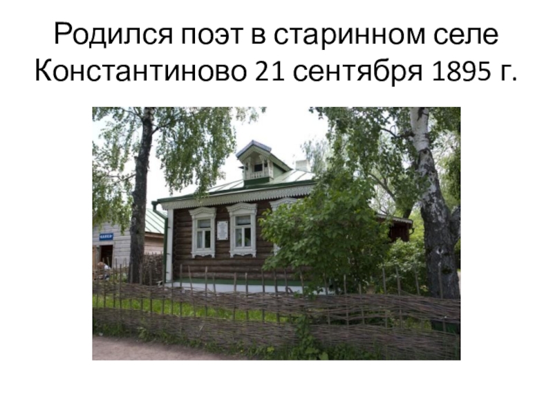 Слайд 3Родился поэт в старинном селе Константиново 21 сентября 1895 г.