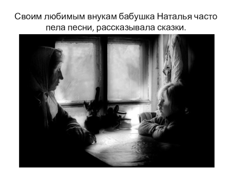 Слайд 14Своим любимым внукам бабушка Наталья часто пела песни, рассказывала сказки.