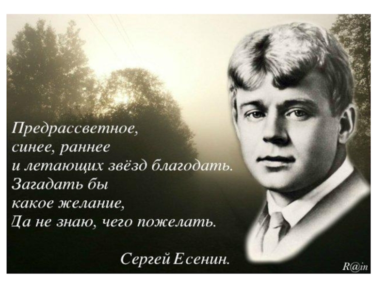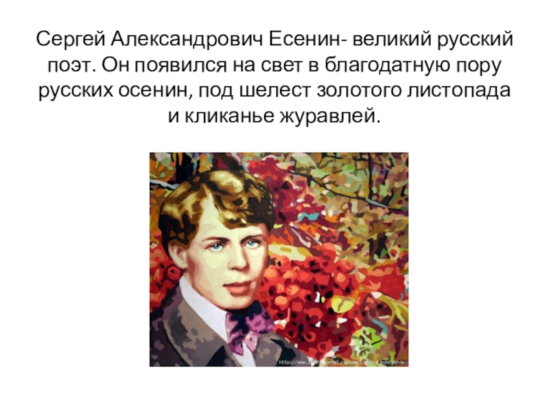 Слайд 4Сергей Александрович Есенин- великий русский поэт. Он появился на свет в