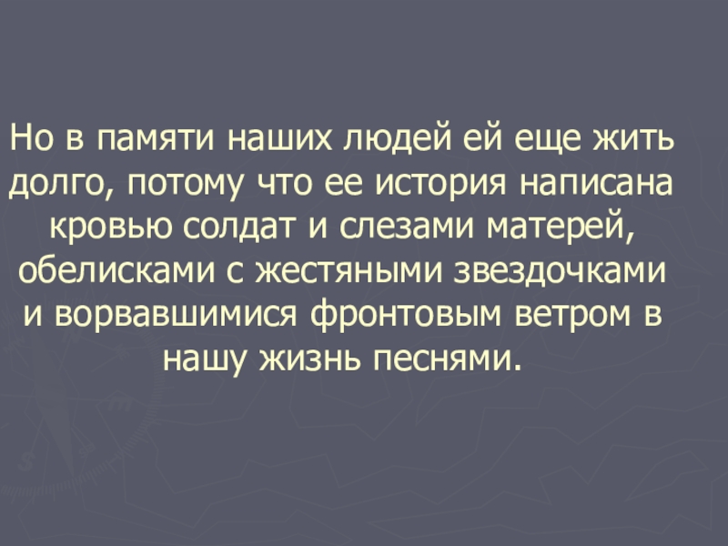 Слайд 22Но в памяти наших людей ей еще жить долго, потому что