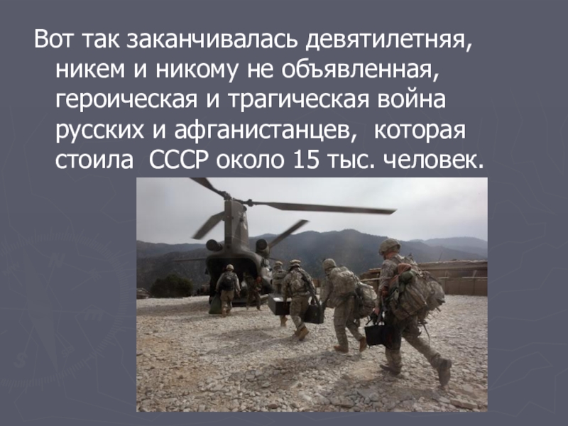 Слайд 21Вот так заканчивалась девятилетняя, никем и никому не объявленная, героическая и