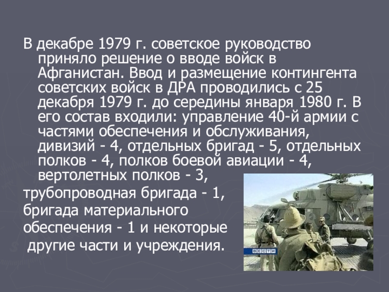 Слайд 5В декабре 1979 г. советское руководство приняло решение о вводе войск