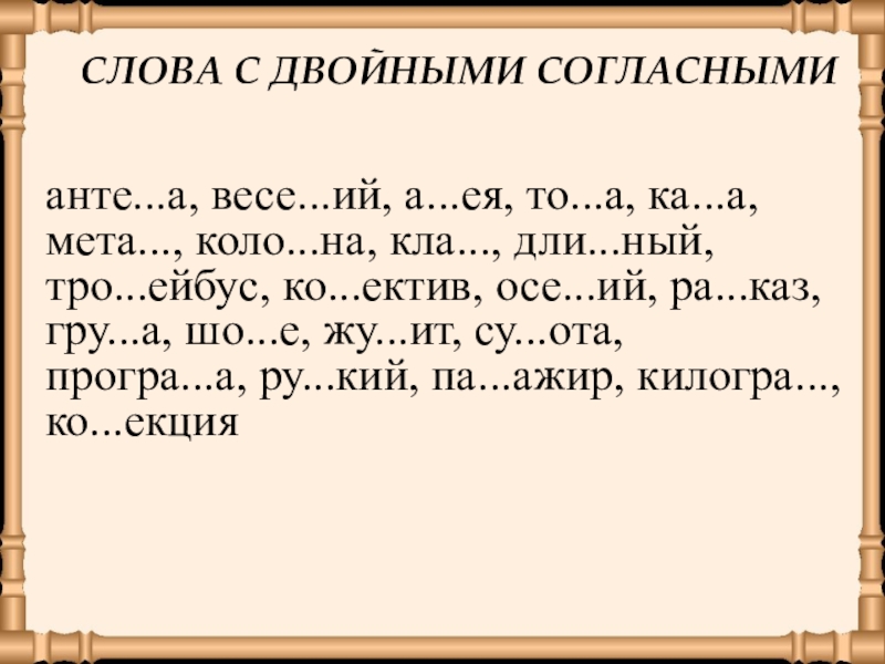 Слайд 8СЛОВА С ДВОЙНЫМИ СОГЛАСНЫМИ