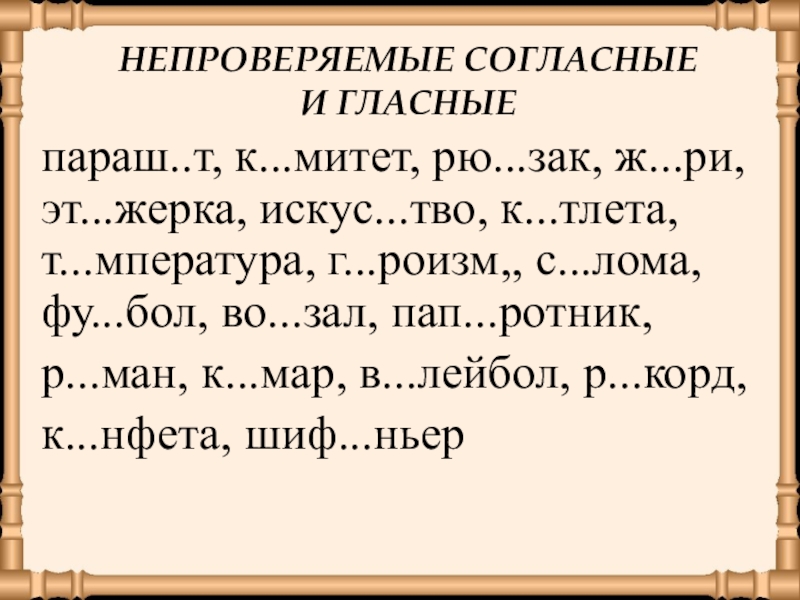 Слайд 10НЕПРОВЕРЯЕМЫЕ СОГЛАСНЫЕ