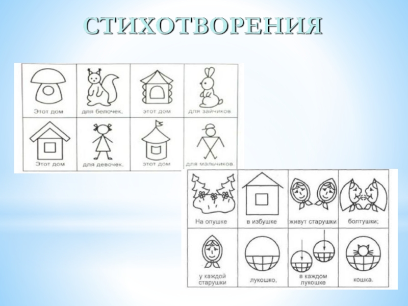 чистоговорки, скороговорки, загадки, стихотворения.