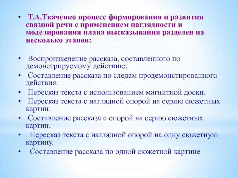 Слайд 16 Т.А.Ткаченко процесс формирования и развития связной речи с применением наглядности и