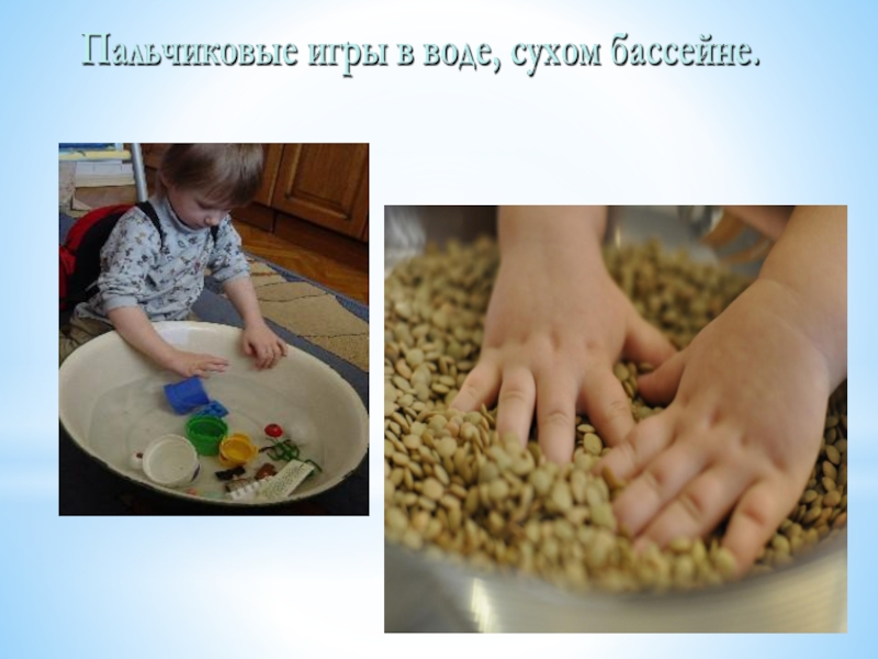 Слайд 10Пальчиковые игры в воде, сухом бассейне