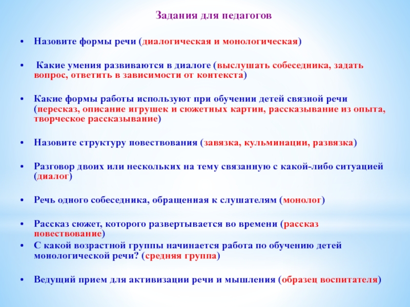 Задания для педагогов