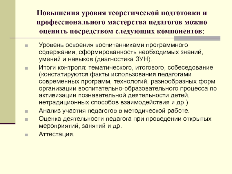 Слайд 17Повышения уровня теоретической подготовки и профессионального мастерства педагогов можно оценить посредством