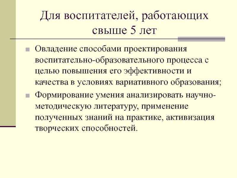 Слайд 9Для воспитателей, работающих свыше 5 лет
