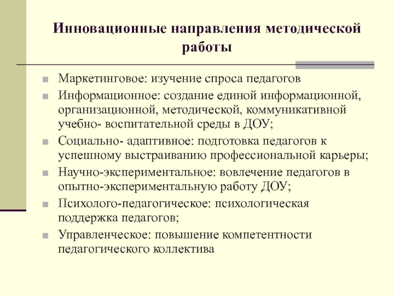 Научно-экспериментальное: вовлечение педагогов в опытно-экспериментальную работу ДОУ;