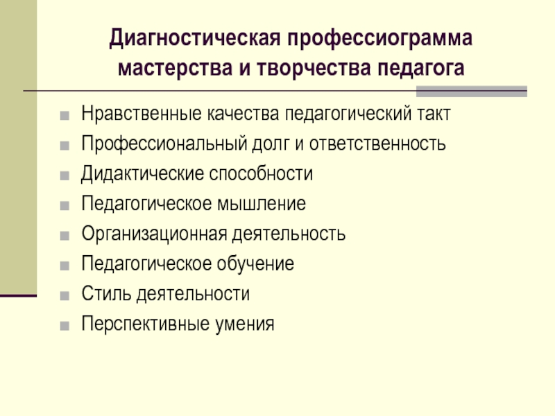 Слайд 18Диагностическая профессиограмма мастерства и творчества педагога