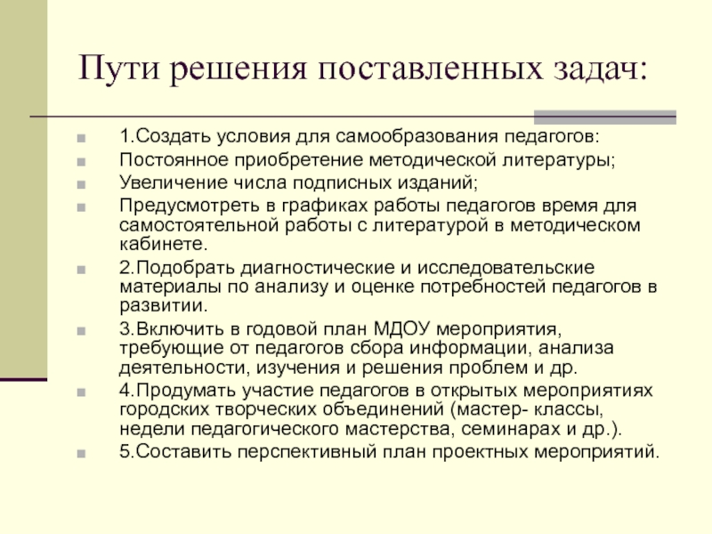 3.Включить в годовой план МДОУ мероприятия, требующие от педагогов сбора информации, анализа деятельности, изучения и решения проблем и др.