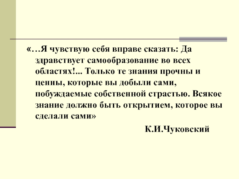 «…Я чувствую себя вправе сказать: Да здравствует самообразование во всех областях!...