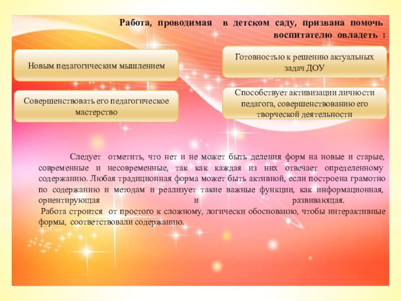 Овладевают новым педагогическим мышлением, готовностью к решению актуальных задач ДОУ