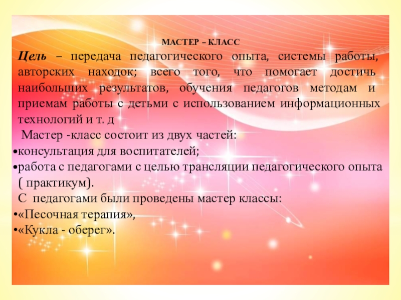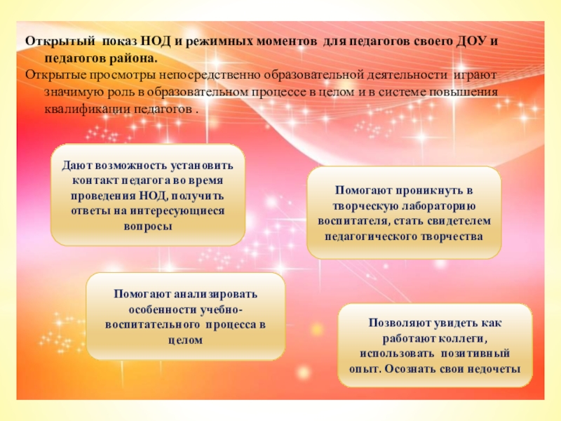 Помогают проникнуть в творческую лабораторию воспитателя, стать свидетелем педагогического творчества