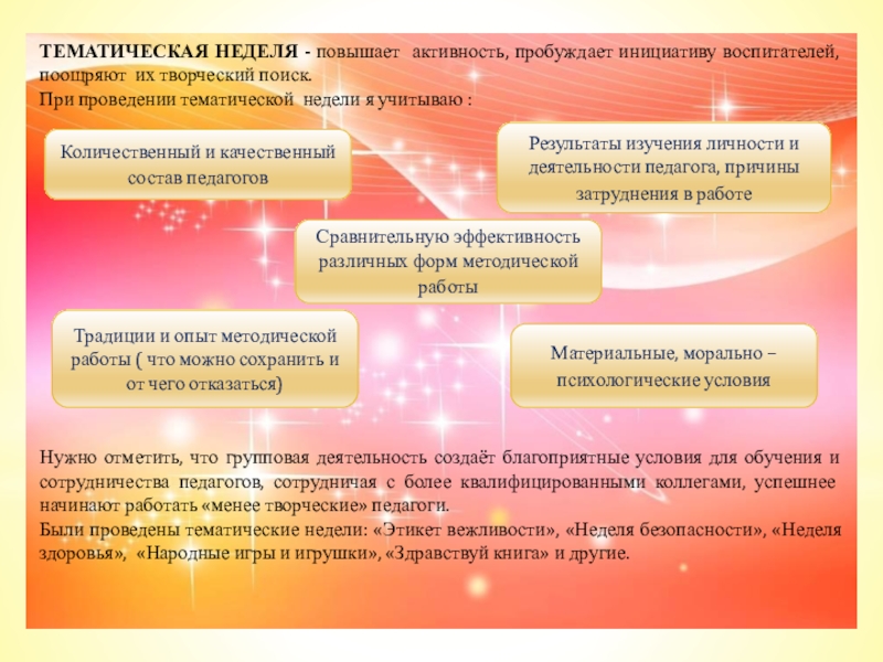 Способствует активизации личности педагога, совершенствованию его творческой деятельности
