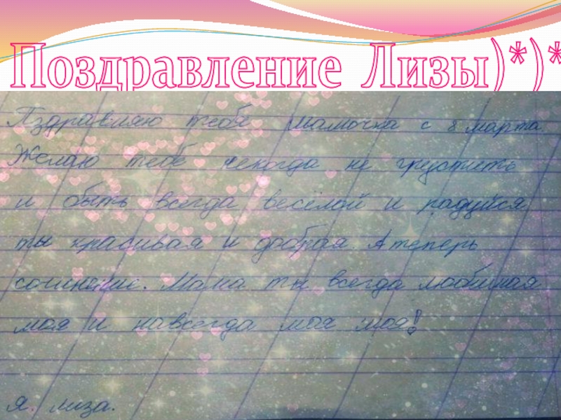 Слайд 20Поздравление Лизы. И)))