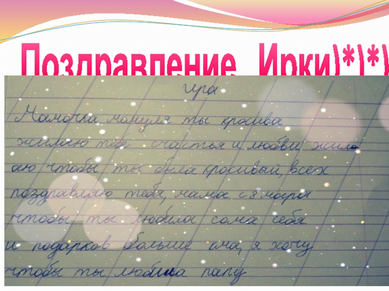 Слайд 12Поздравление Ирки)*)*)*