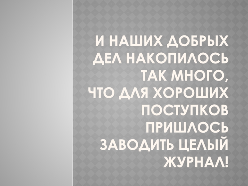 Слайд 20И наших добрых дел накопилось так много, что для хороших поступков пришлось заводить