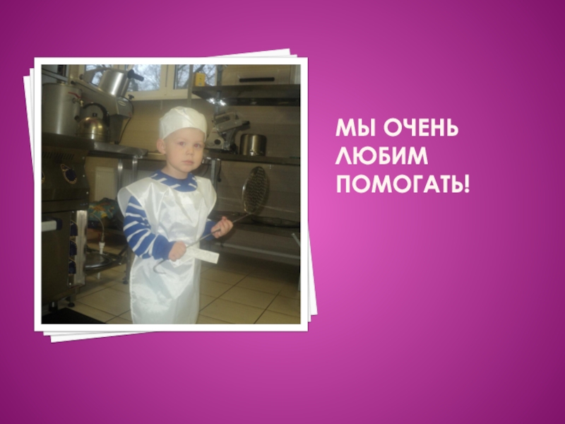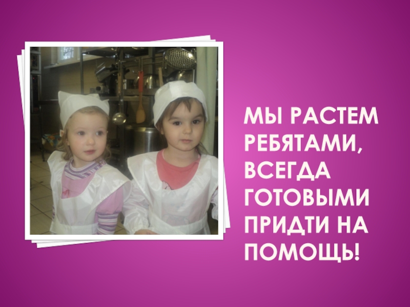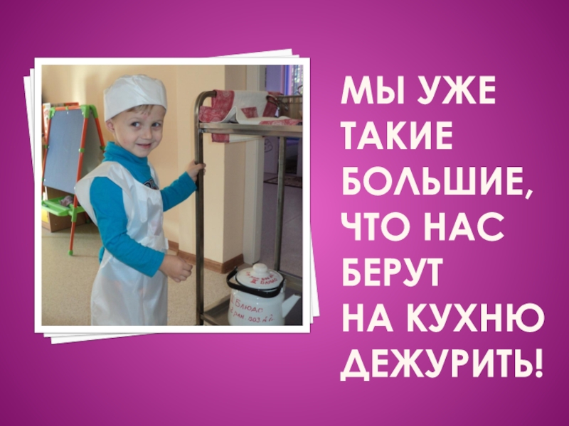 Слайд 6Мы уже такие большие, что нас берут на кухню дежурить!