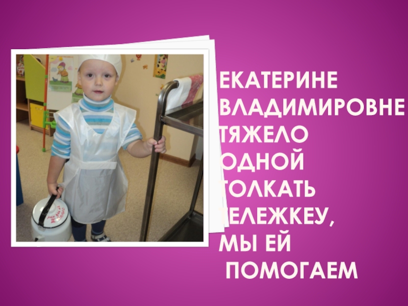 Слайд 7Екатерине владимировне тяжело одной толкать тележкеу, мы ей помогаем