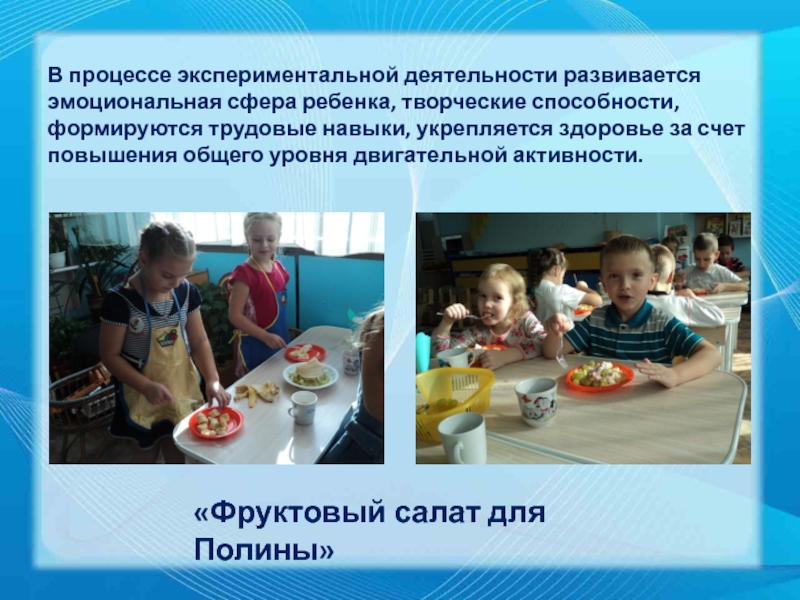 Слайд 9В процессе экспериментальной деятельности развивается эмоциональная сфера ребенка, творческие способности, формируются