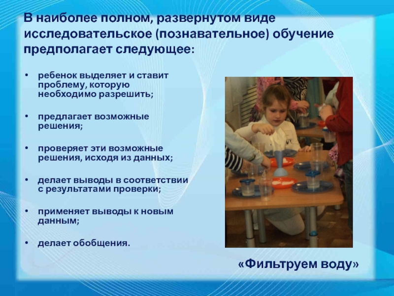 Слайд 10В наиболее полном, развернутом виде исследовательское (познавательное) обучение предполагает следующее: