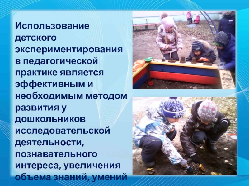 Слайд 5Использование детского экспериментирования в педагогической практике является эффективным и необходимым методом
