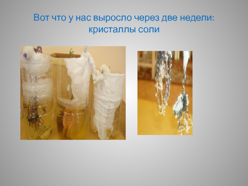 Слайд 22Вот что у нас выросло через две недели: кристаллы соли
