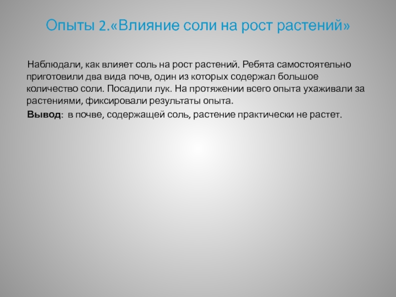 Слайд 19Опыты 2.«Влияние соли на рост растений»