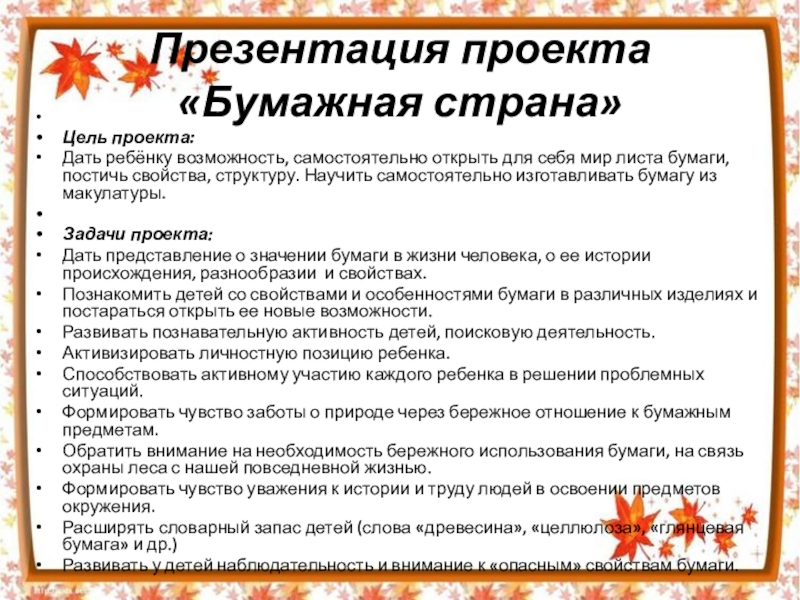 Презентация проекта «Бумажная страна» (праздник)