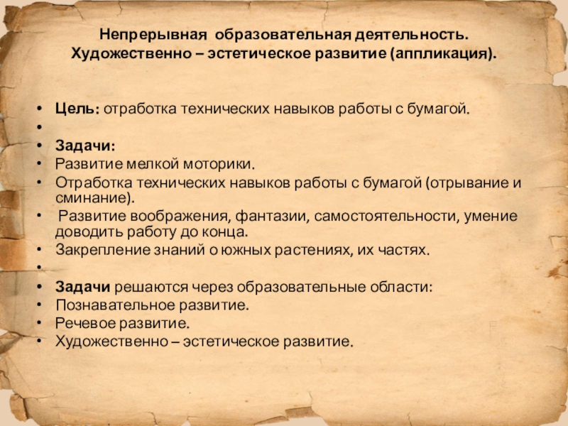 Художественно – эстетическое развитие (аппликация).