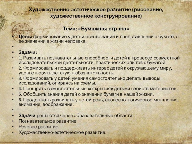 знаний и представлений о бумаге, о ее значении в жизни человека.