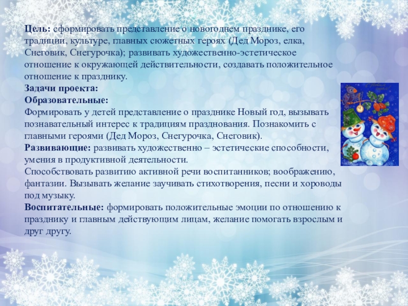 Слайд 3Цель: сформировать представление о новогоднем празднике, его