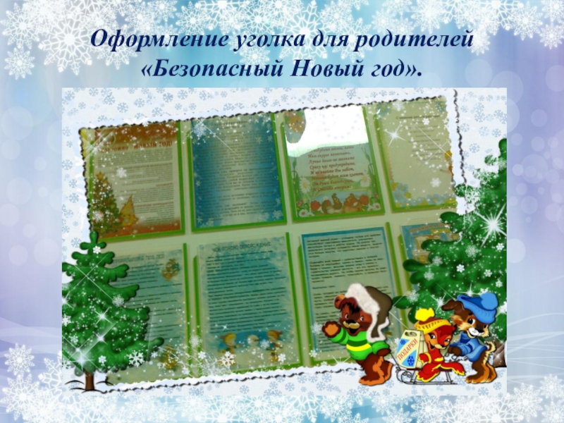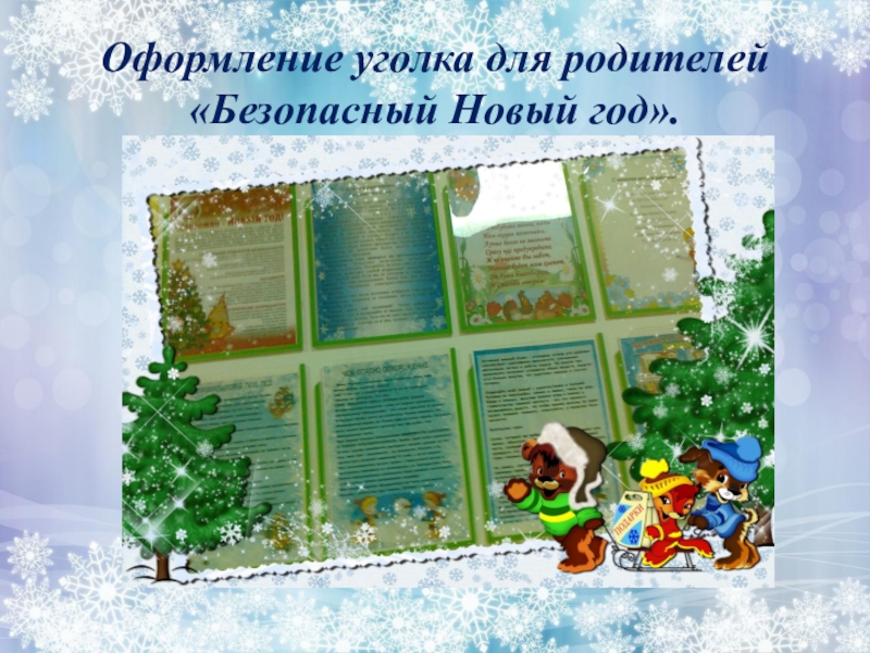 Слайд 6Оформление уголка для родителей «Безопасный Новый год».