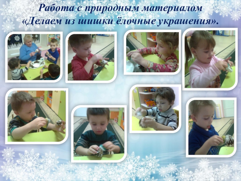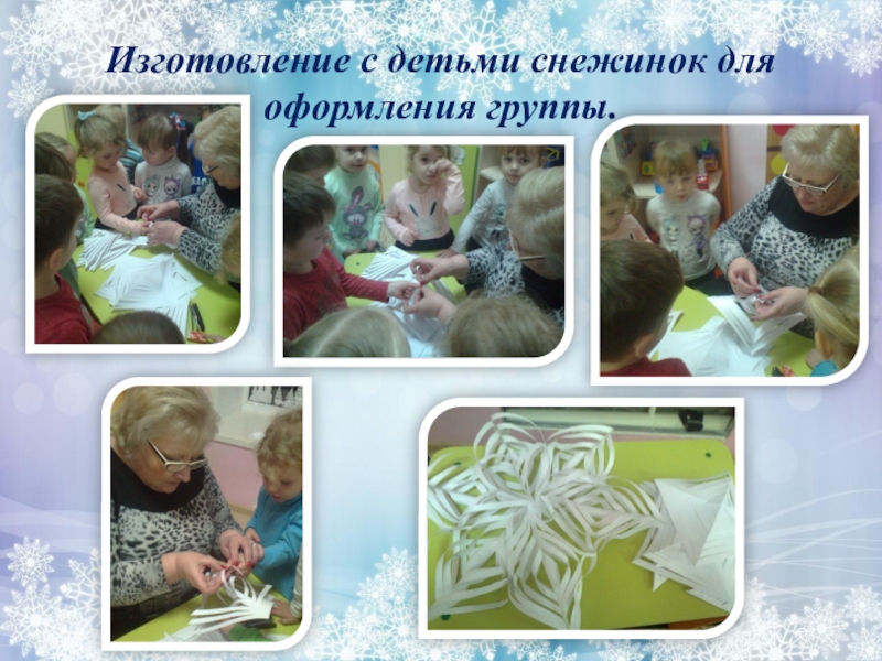 Слайд 8Изготовление с детьми снежинок для оформления группы.