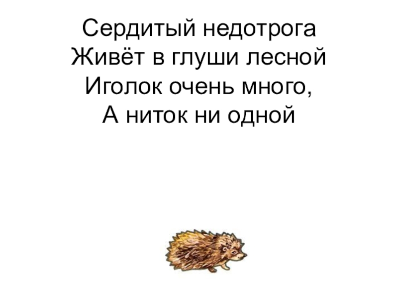 Слайд 7Сердитый недотрога  Живёт в глуши лесной  Иголок очень много,  А ниток ни одной