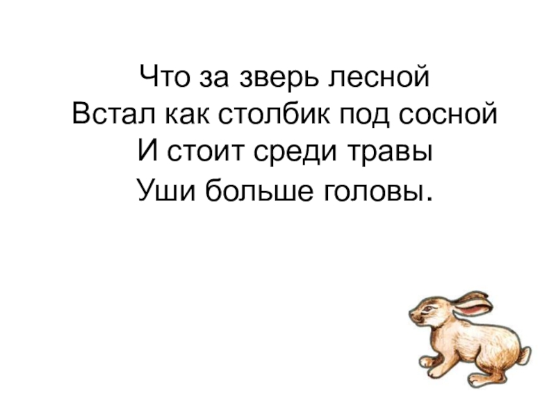 Слайд 4 Что за зверь лесной  Встал как столбик под сосной  И стоит среди травы  Уши