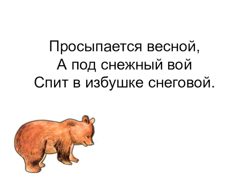 Слайд 3Просыпается весной,  А под снежный вой  Спит в избушке снеговой.