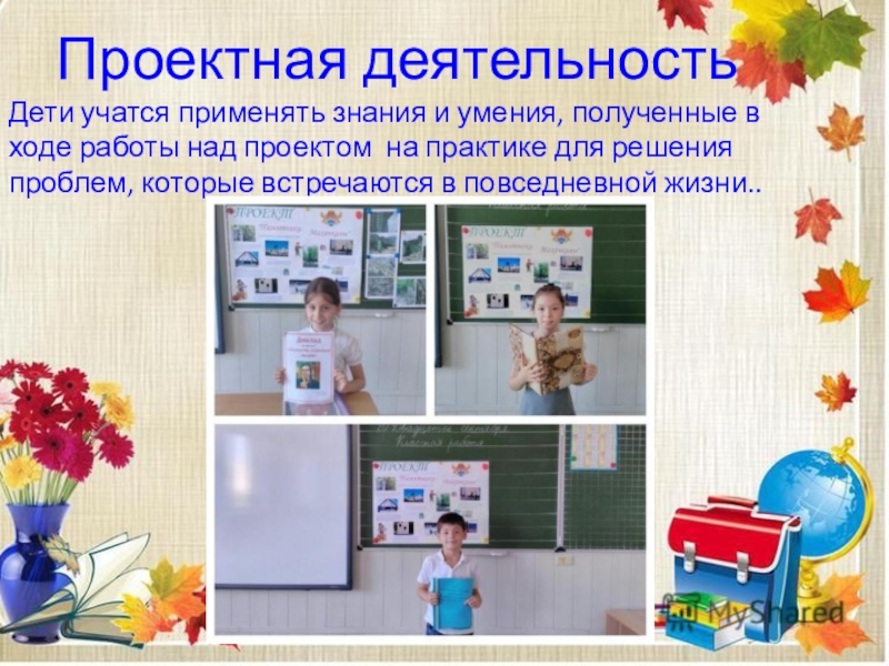 Проектная деятельностьДети учатся применять знания и умения, полученные в ходе работы над проектом на практике для решения