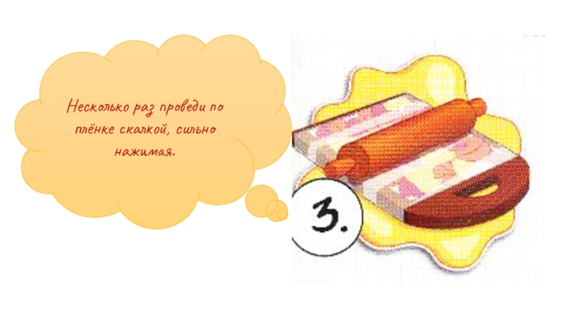 Слайд 10Несколько раз проведи по плёнке скалкой, сильно нажимая.