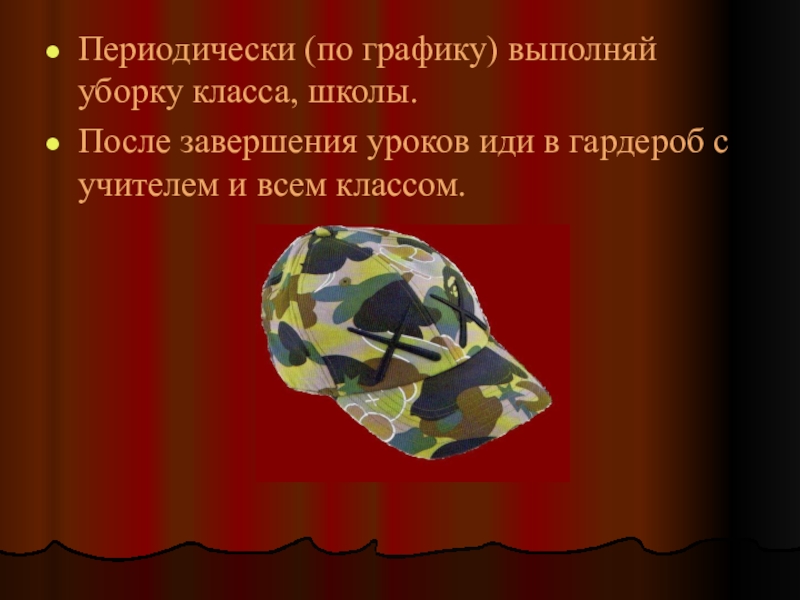 Слайд 8Периодически (по графику) выполняй уборку класса, школы.